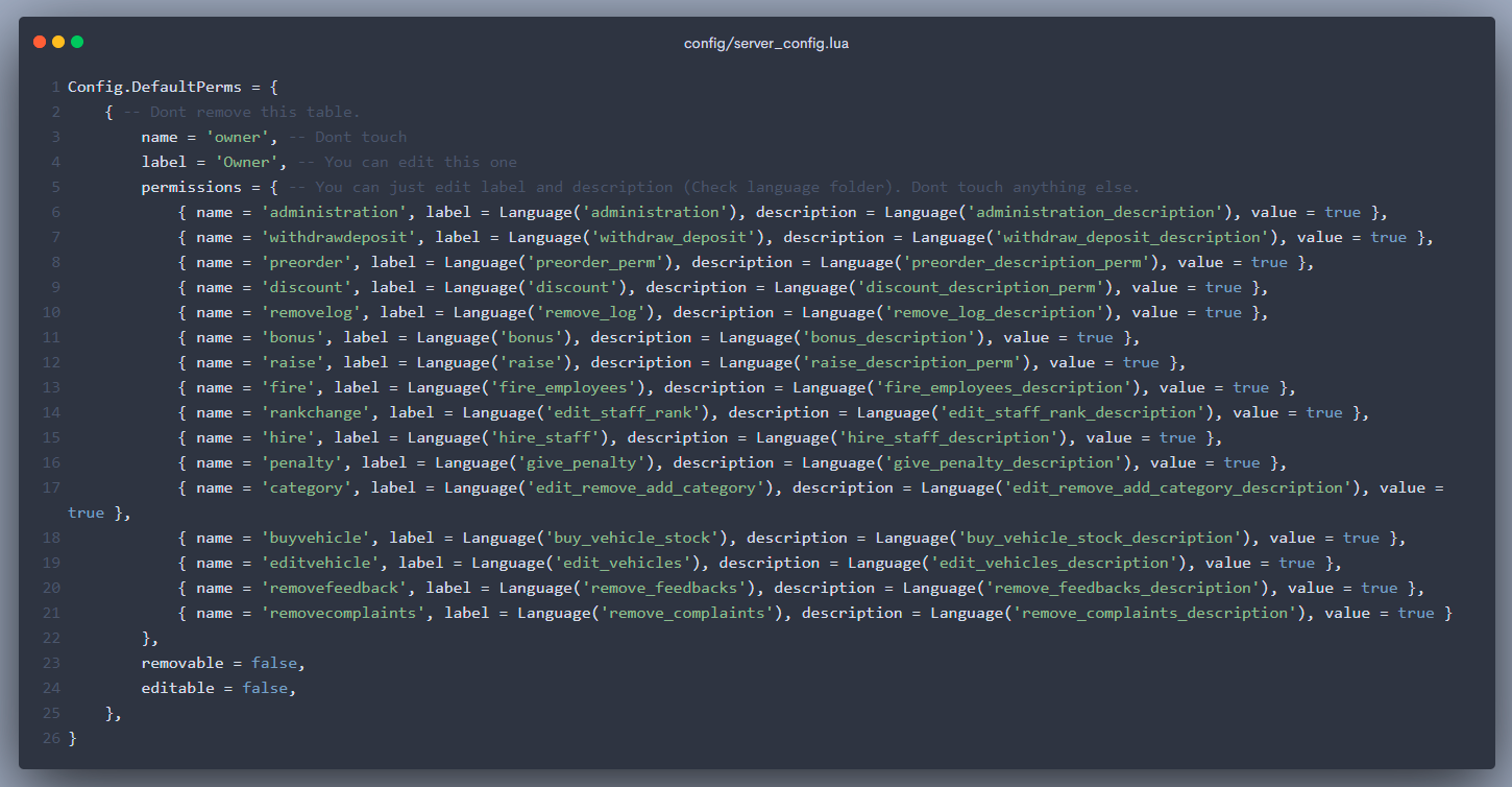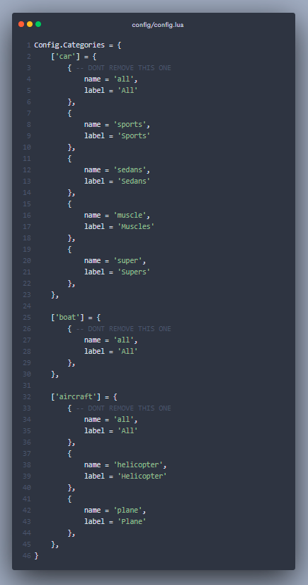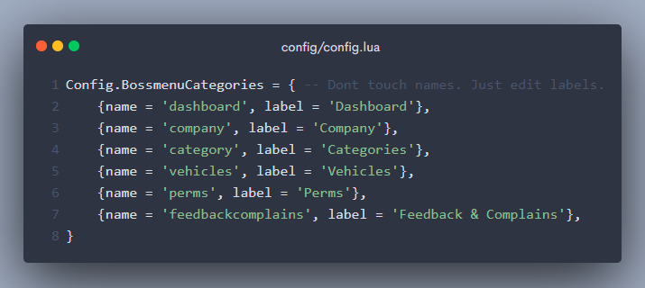 Categories on the left side in Bossmenu. You can only change the labels, don't touch the names.