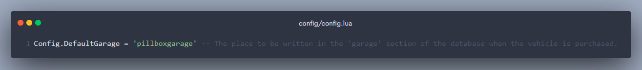 The place to be written in the 'garage' section of the database when the vehicle is purchased.